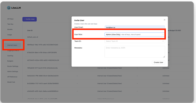 "user_role": "internal_user" # 👈 THIS ALLOWS USER TO CREATE/VIEW/DELETE THEIR OWN KEYS + SEE THEIR SPEND